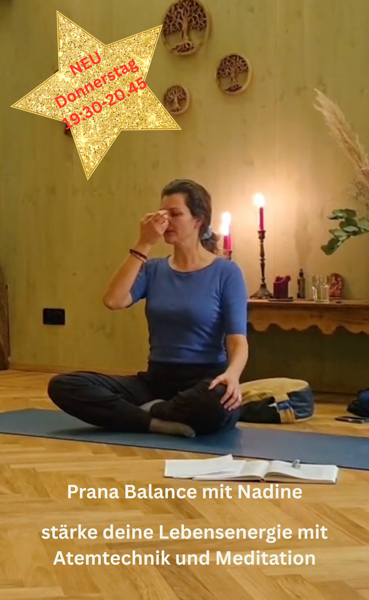 Sowie Nadine (Inhaberin) mit Prana Balance um 19:30-20:45 Uhr. Eine Stunde, in welcher du deine Lebensenergie stärkst und das Nervensystem sich beruhigt.